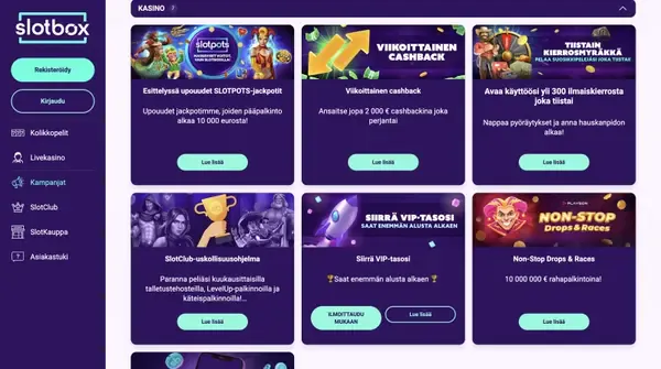 SlotBoxin viikoittaiset kampanjat, joita voit lunastaa Suomessa